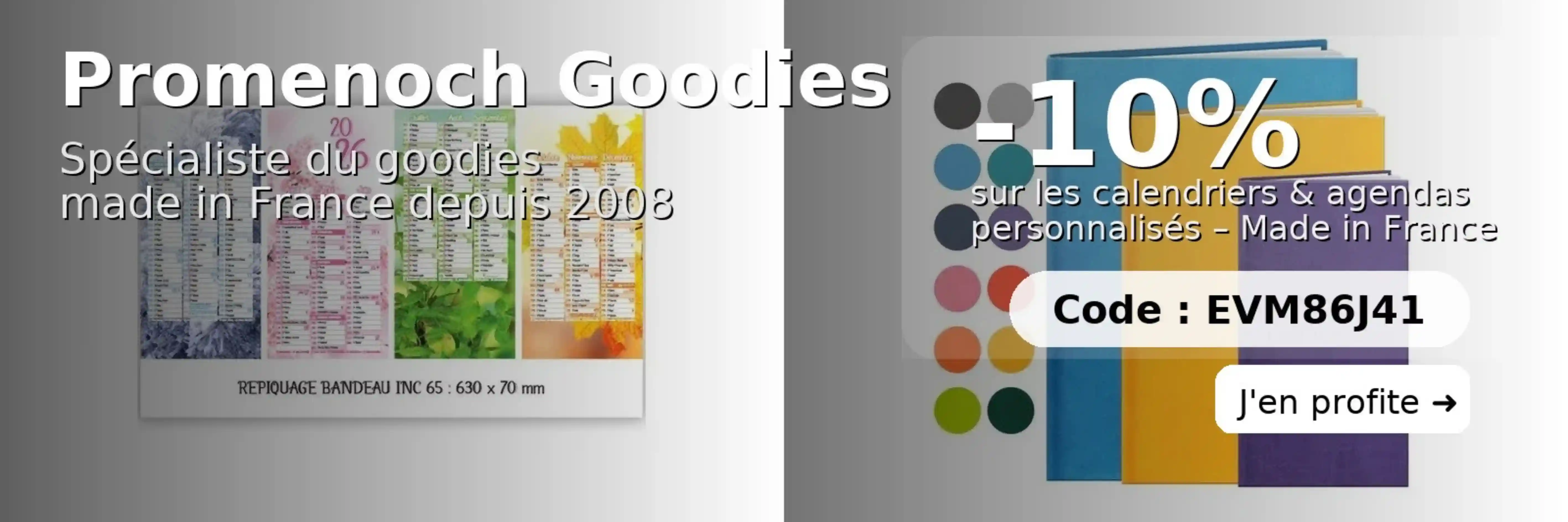 Chez Promenoch-goodies, nous sommes convaincus que chaque objet publicitaire représente une véritable opportunité de communication. Stylos, tote bags, gourdes, t-shirts ou gobelets réutilisables : nos goodies personnalisés permettent de renforcer l’image de votre marque lors d’un salon, d’un événement, d’une campagne ou d’un projet RSE. Depuis plus de 17 ans, nous accompagnons entreprises, collectivités et associations dans la création de supports personnalisés à forte visibilité.