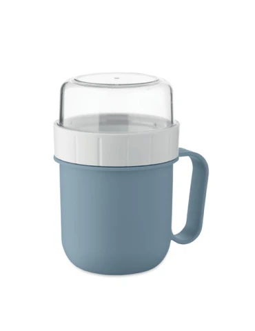 Mug et coupelle pour petit-déjeuner ou brunch à emporter en PP et couvercle en PS. Composé de 2 récipients individuels pour garder les ingrédients séparés. Capacité : 450 ml et 160 ml. Anti fuite.